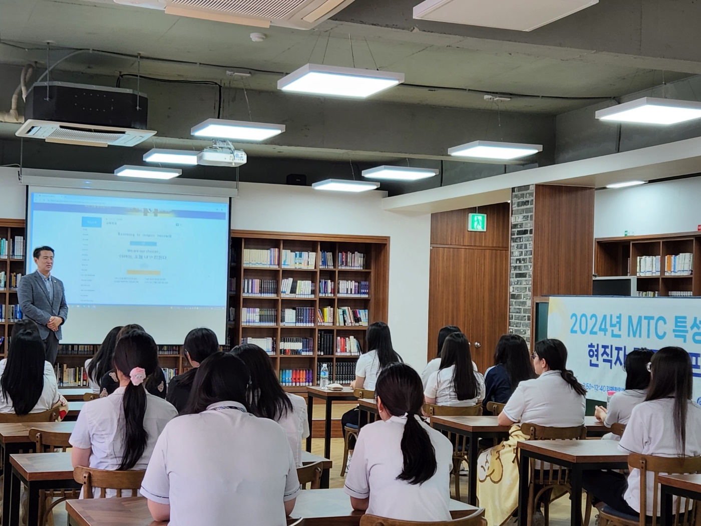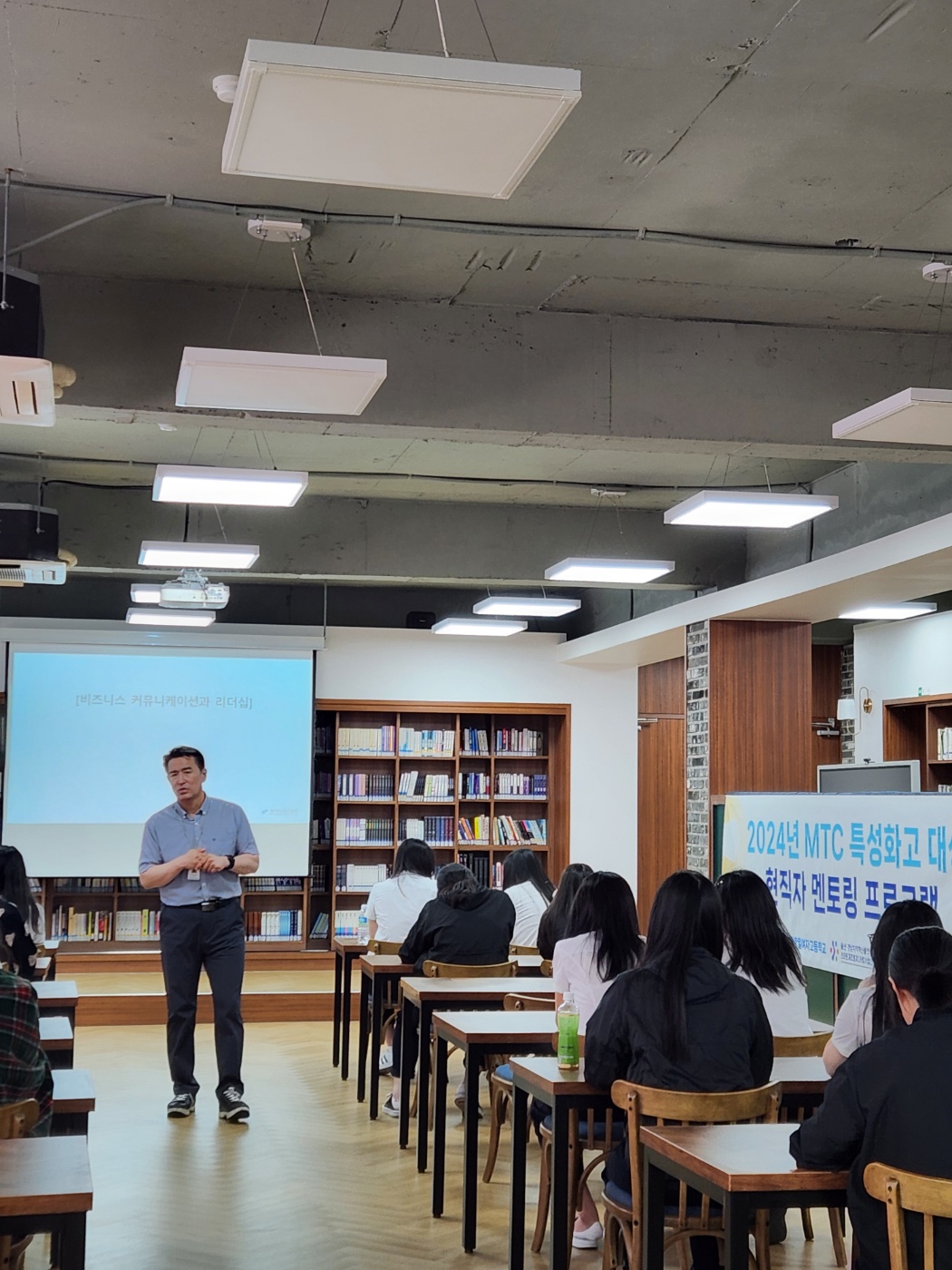 고3 예비 직장인을 대상으로 직장생활에 필요한 마음가짐에 대해 현직자로부터 강의를 들고 면접관이 중요하게 여기는 의사소통력에 대한 이야기를 듣는 시간을 가졌습니다