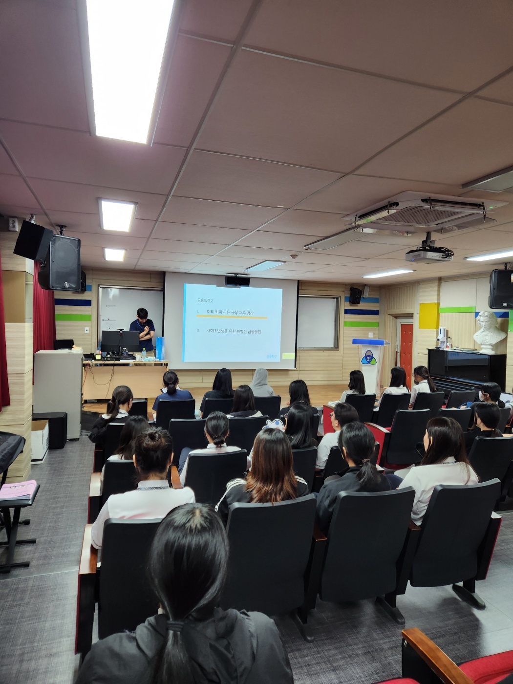 예금, 적금 등 일반적인 금융상식부터 취업을 이용한 사기, 메시지를 이용한 금융사기, 보이스 피싱 등 사회초연생이 주의해야 할 금융 범죄에 대한 경각심을 가질 수 있는 시간이었습니다.