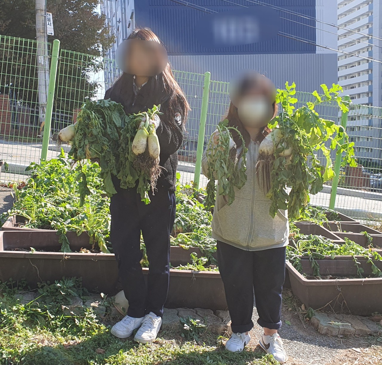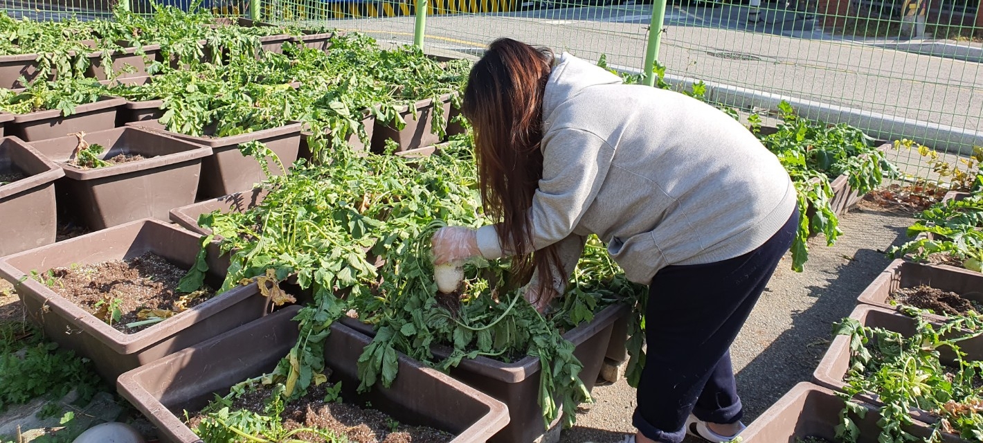 김해한일여고 동아리 한가람부에서 텃밭 무수확 활동을 진행하였습니다.