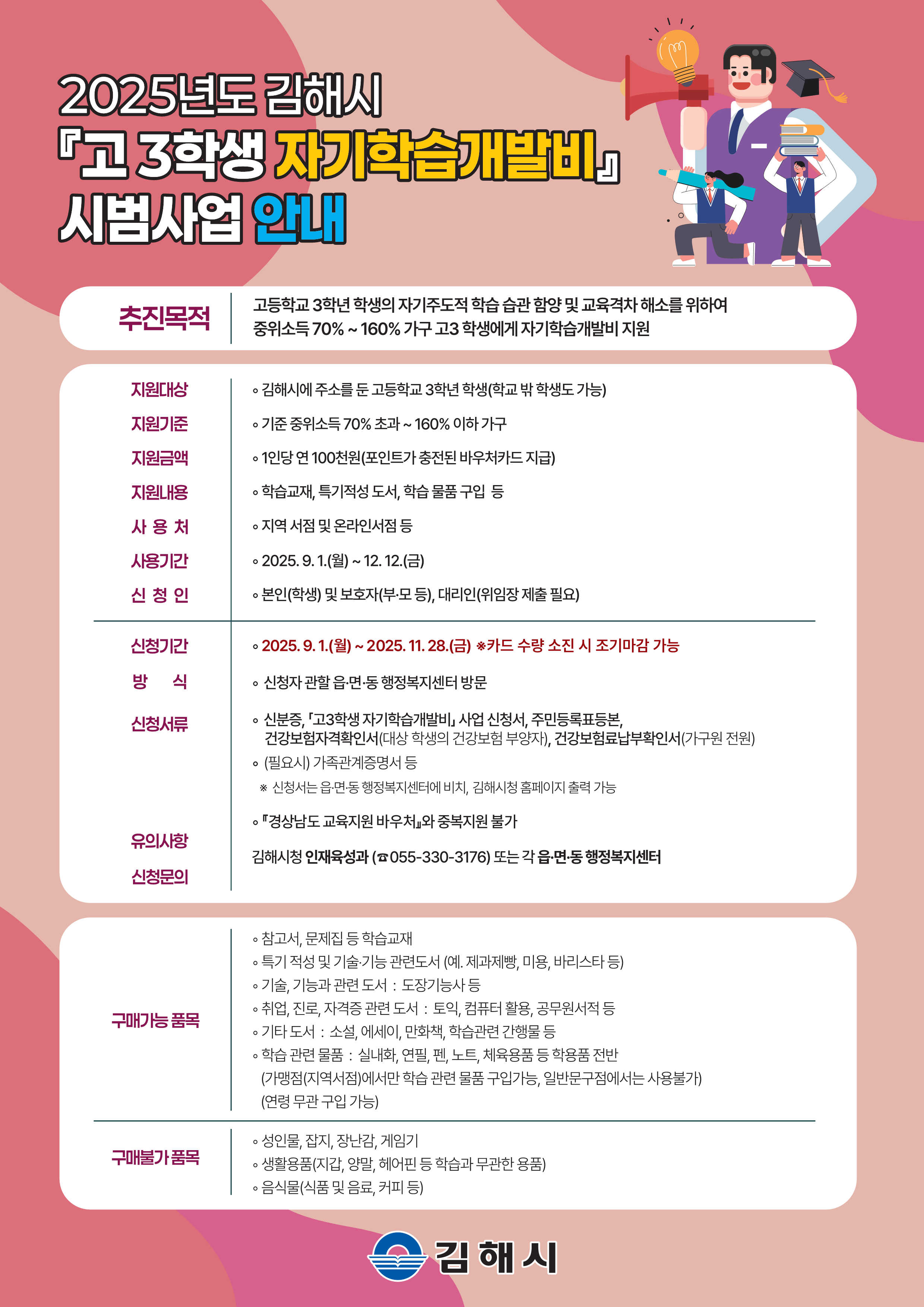 2025년 김해시「고3학생 자기학습개발비」신청 안내