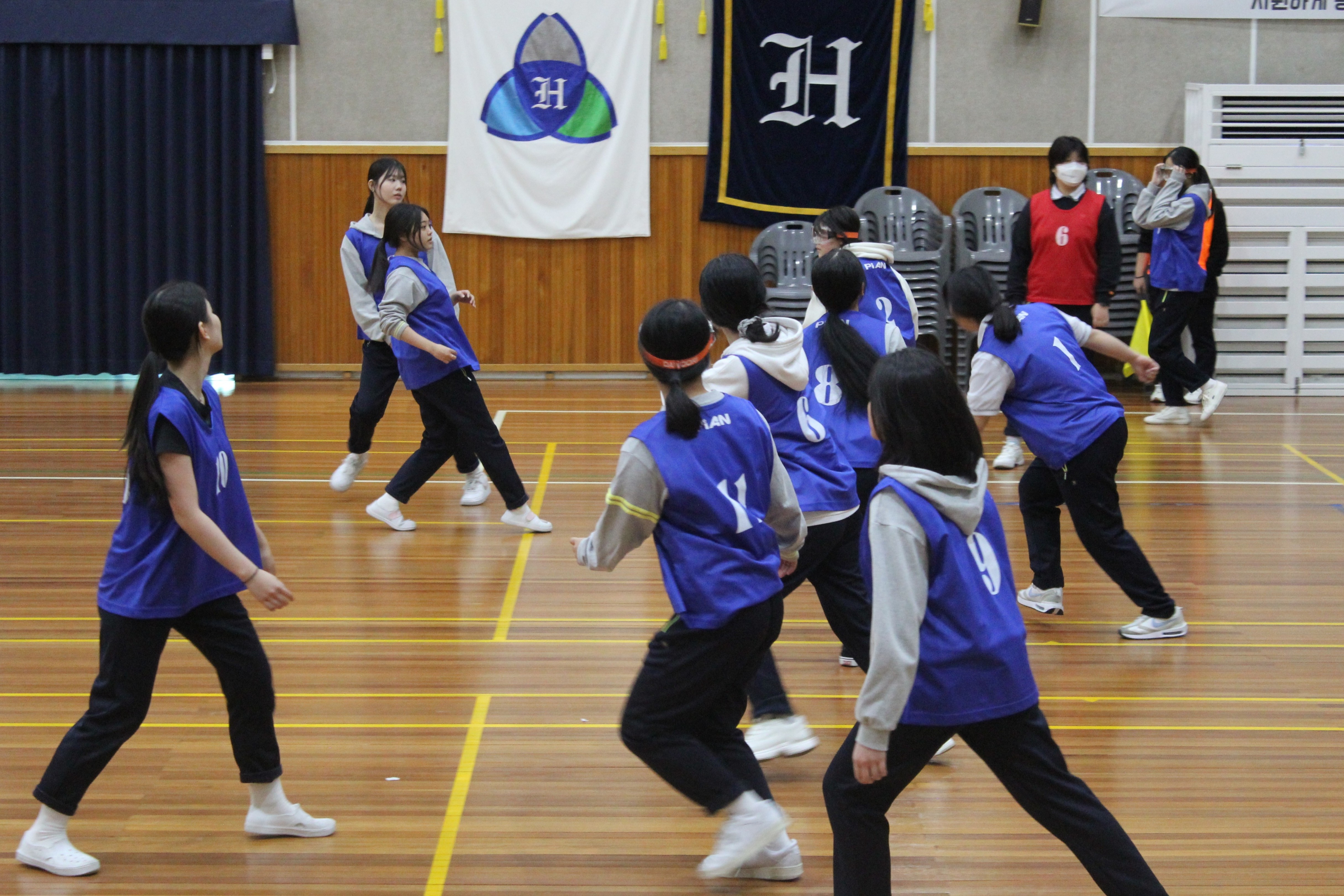 1. 종목: 1학년 피구경기 2. 일정: 10~11월 중 점심시간 3. 참여: 1학년 8개 반 4. 경기결과 1위(1학년 2반) 2위(1학년 5반) 3위(1학년 4반) 4위(1학년 6반)
