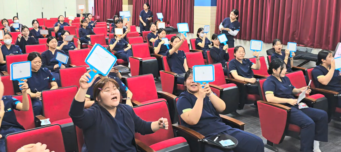 골든벨 형식으로 진행된 활동에서 학생들은 다양한 문제를 풀며 의학용어·해부생리 기초 지식을 점검했고, 실습 현장에서 실제로 활용되는 표현들을 자연스럽게 복습하는 시간을 가졌습니다.